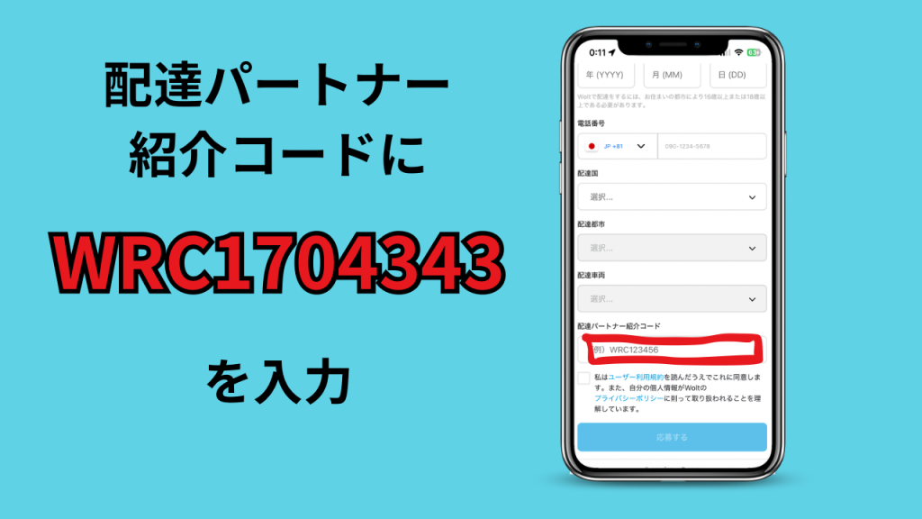 woltの配達パートナーを始めるときの紹介特典コードは